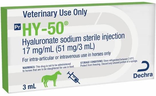 HY-50 for horses is a Sodium Hyaluronate (Hyaluronic Acid) injection specially formulated for horses. It’s used to treat joint inflammation, synovitis, and osteoarthritis, improving overall mobility and comfort. As a sterile, high-purity injectable solution, HY-50 for horses supports joint lubrication and helps maintain long-term performance in both sport and working horses.